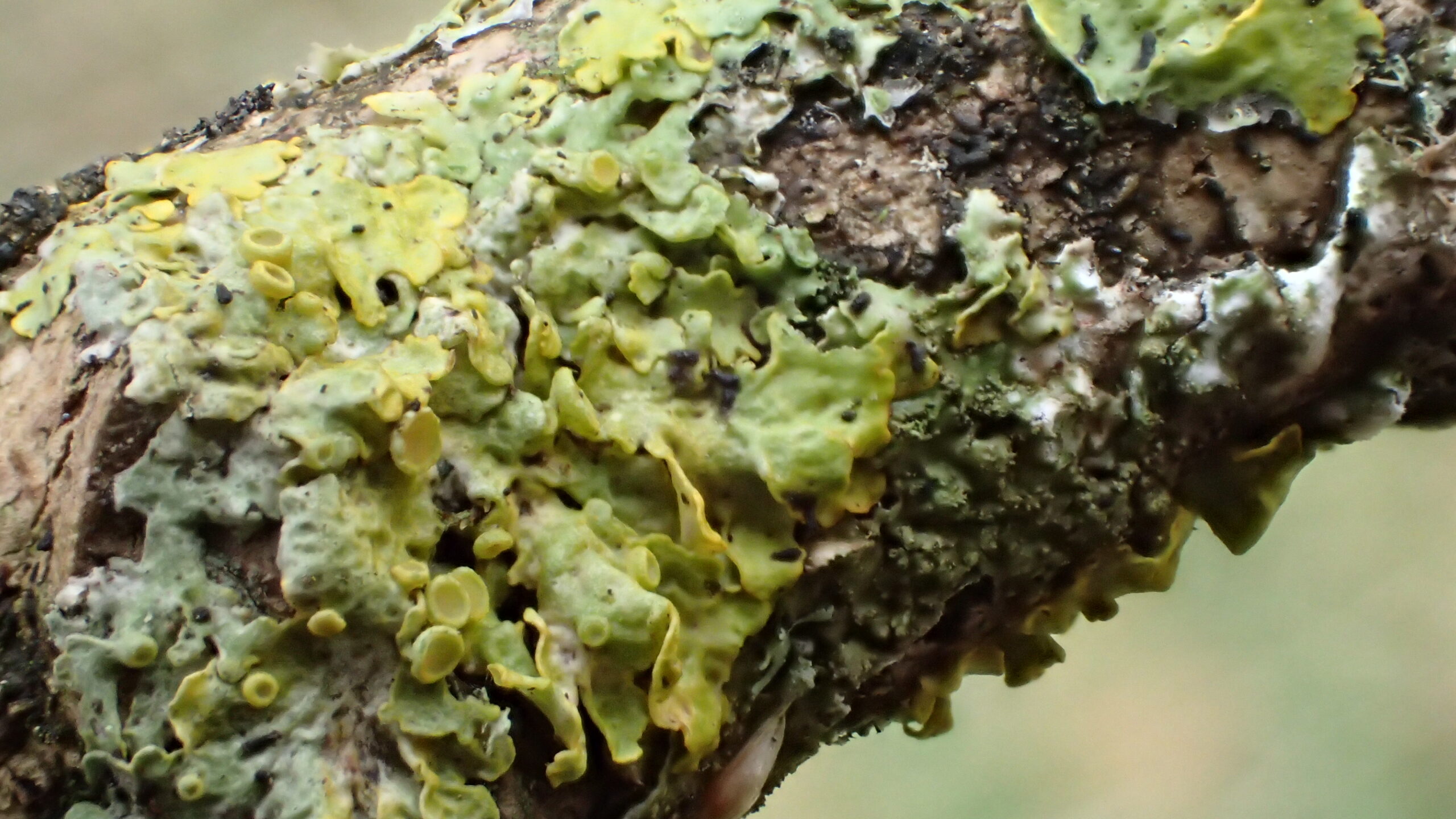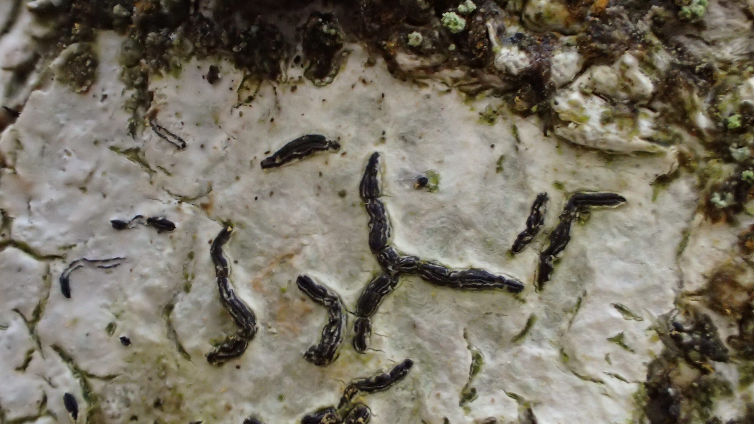 There were things missing though. As in many Cumbrian woodlands, we only found the four commonest Southern Oceanic Woodland Index lichens (Thelotrema, P. horzontalis, S. septata and Anisomeridium ranunculosporum). There was nothing that appears on the Upland Rainforest Index, even though it’s a damp, mostly acid-barked ancient woodland. And there was no Usnea. There was some Xanthoria parietina, though less than we might have feared.